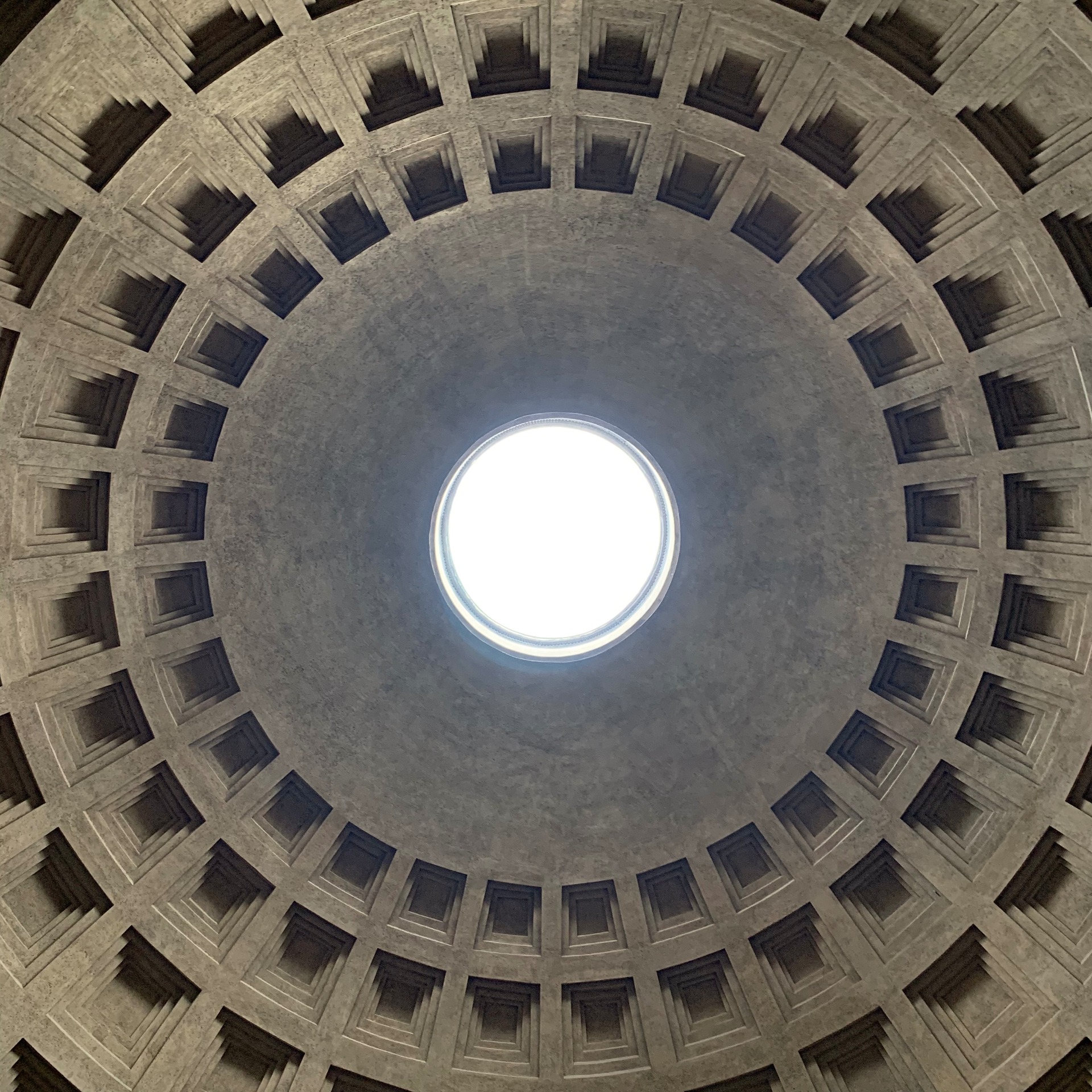 Když vstoupíte do Pantheonu ihned se podíváte vzhůru ke kupoli, kde je 9 metrový v průměru otvor, kterým jde denní světlo dovnitř.
